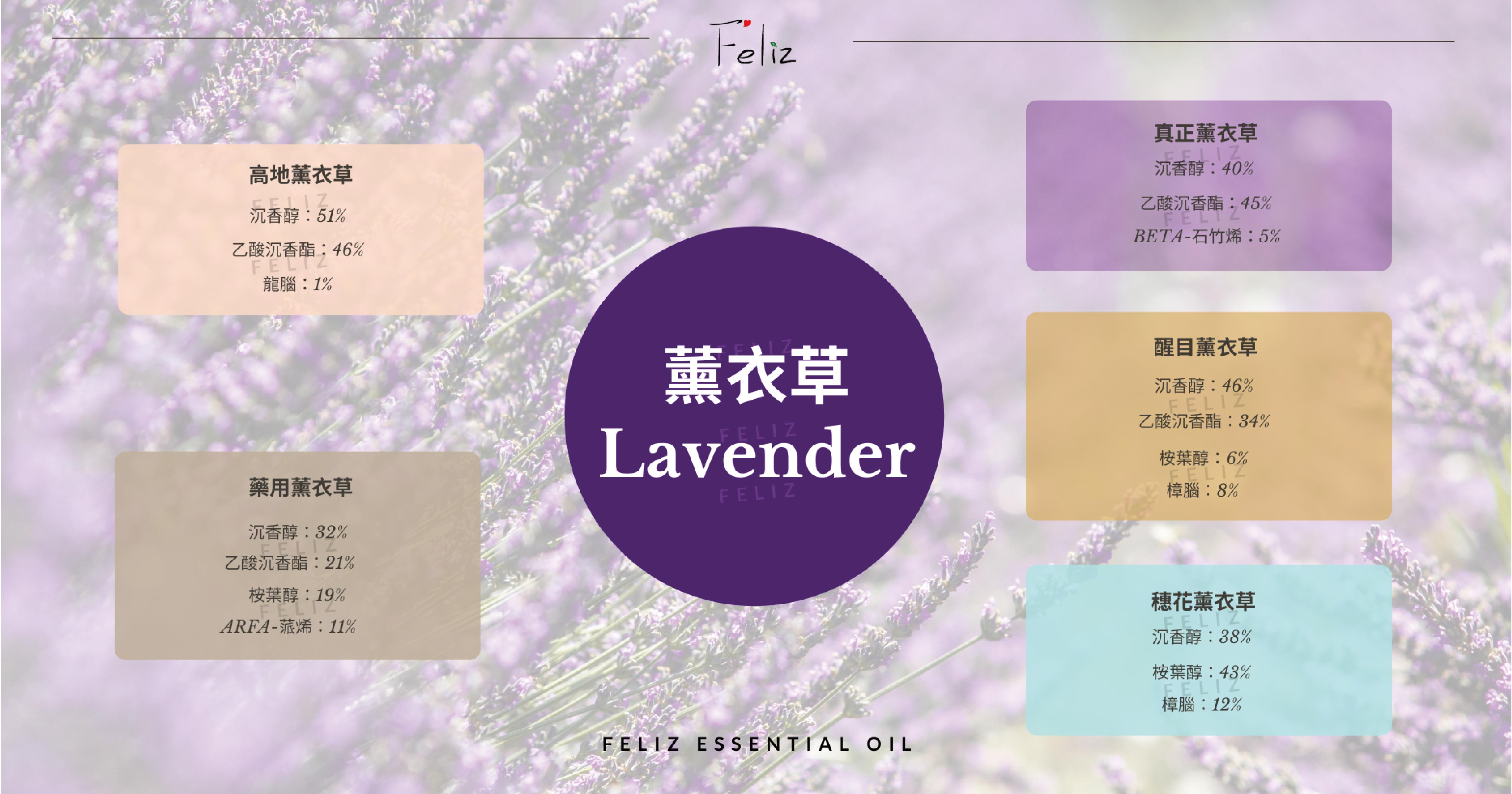 其實這個名稱,〝真正〞的意思是純種的薰衣草的意思。薰衣草的種類有上百種,常見的有真正薰衣草、穗花薰衣草、醒目薰衣草、高地薰衣草等等,每種薰衣草的精油成分都含有沉香醇以及乙酸沉香酯,兩者都是帶給人舒緩放鬆的重要成分,但是所佔的比例不盡相同,而部分薰衣草精油含有桉油醇、龍腦、樟腦等成分,所以味道聞起來會有明顯的差異,而因為成分的不同,用途也會有很大的差異。