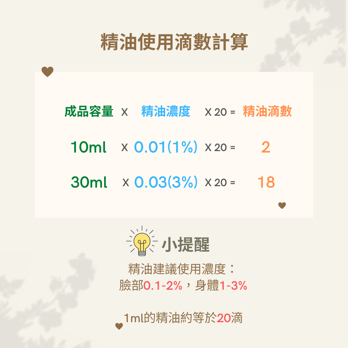 免責聲明:精油未稀釋僅作為薰香用途,本公司不對個人自行調配成品之使用結果負法律或其他責任。